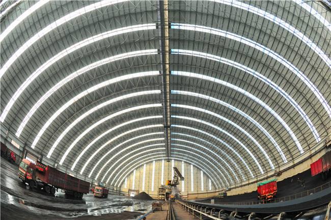堆场料场封闭式主体结构为新型的钢松滋网架结构,维修结构为松滋钢结构松滋不锈钢板和纤维增强塑料灯具,其外形以松滋网架式和平板为主,连接柱松滋施工自由,设置喷雾自动喷水系统,从而可以实现棚内所有物料的覆盖,减少物料在运输过程中的损耗,起到防尘的作用,减少工厂关闭后的二氧化硫排放量,50mg/m3颗粒排放量小于10mg/m3,非常适合低能耗。低闭库自动感应反应对库存轮胎进行清洁,确保轮胎不受道路污染;封闭的储存区可从源头控制粉尘污染,控制无序排放。